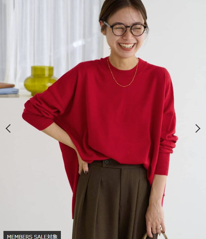 上記のグレーの色違いです。明るい色が欲しくなりまして、パーソナルカラーがオータムですので、レットは似合う色です。顔色がよく見えそうです。