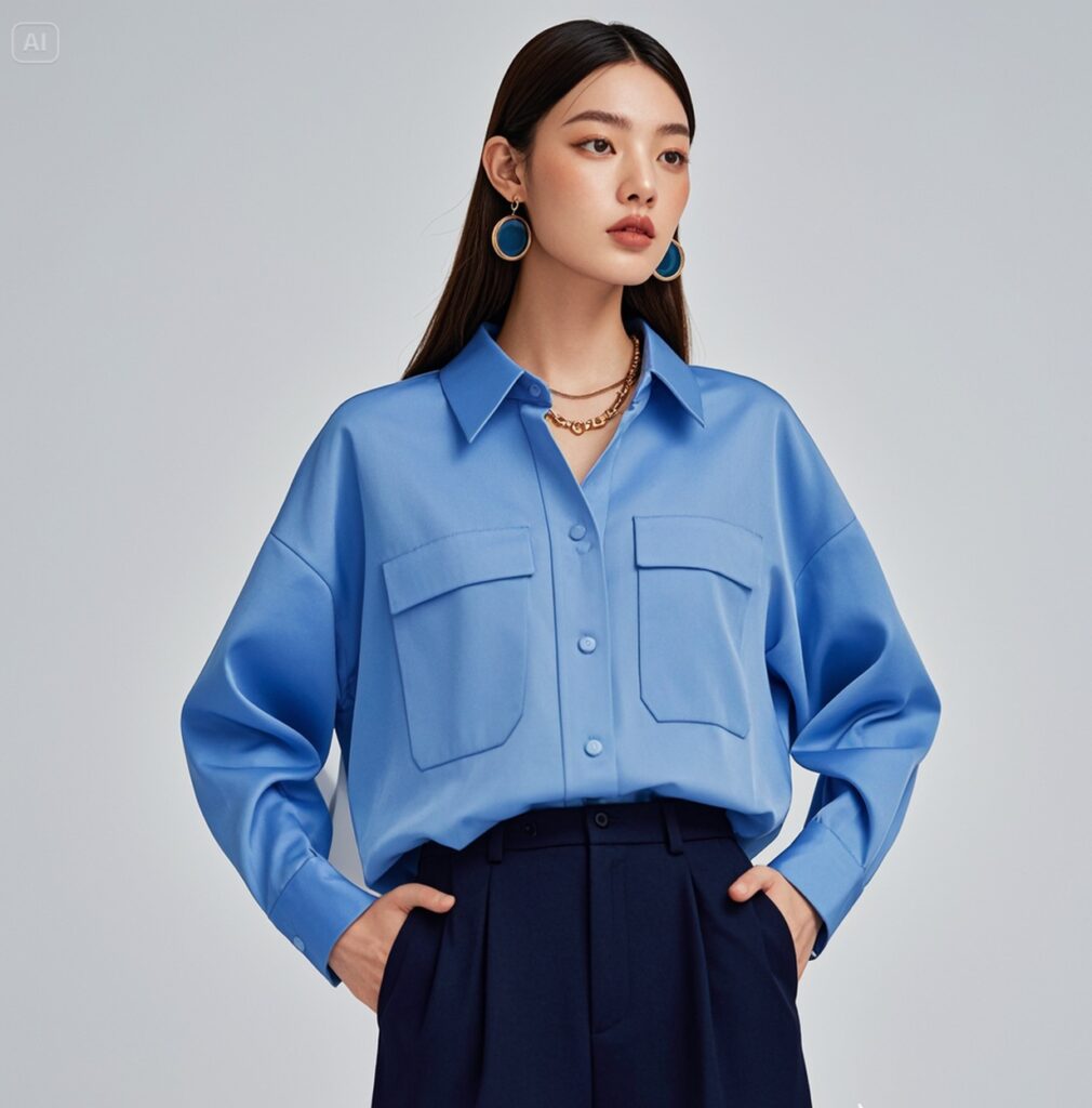 9月のマネコーデはブルーシャツから