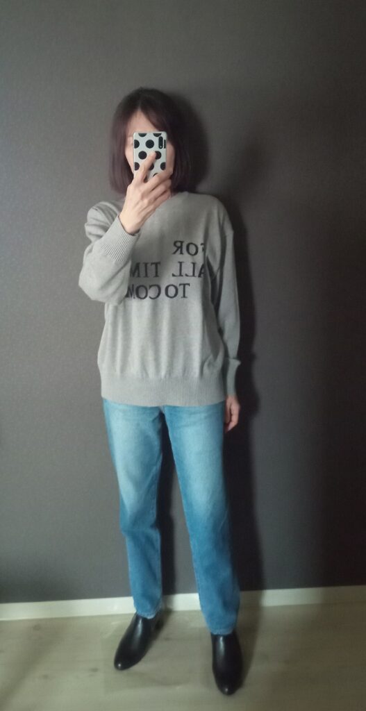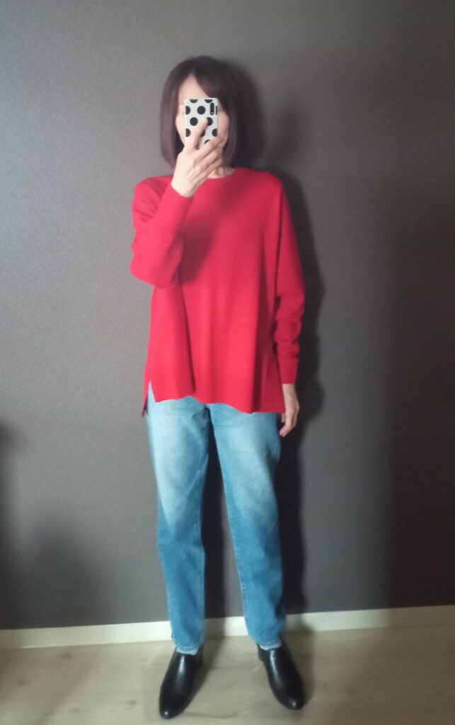着丈が長くはないので、ほとんどのボトムスと相性がいいです。