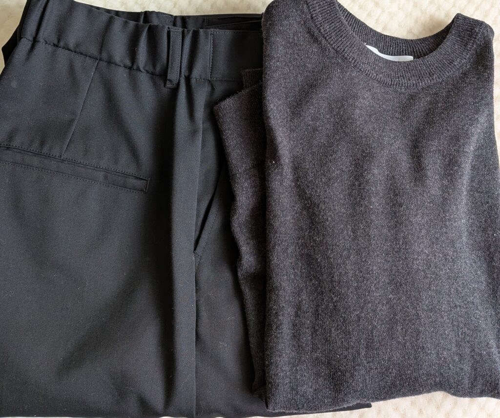 まずは買わずに、手持ちの服でコーディネイトしていきます。