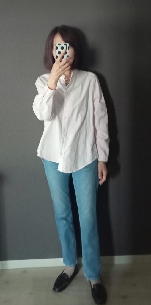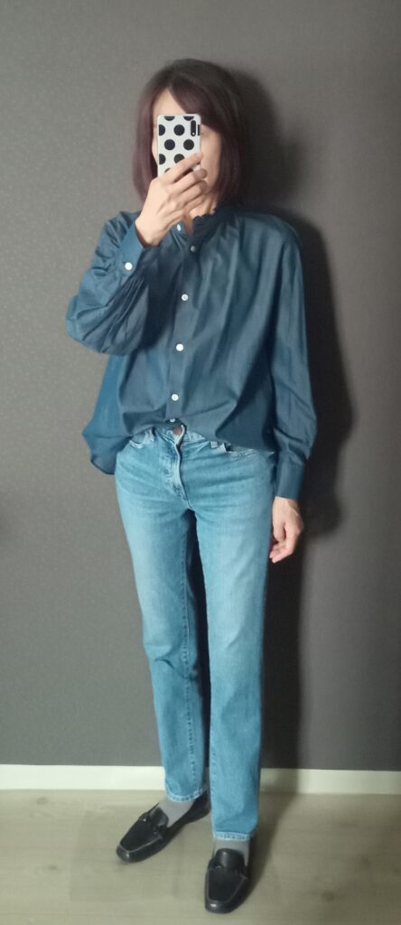 靴もスニーカーを合わせる事が多いと思いますけど、ローファーを合わせるのもありですね。