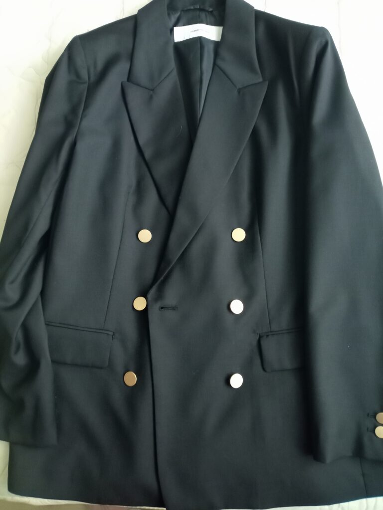 ネイビーテーラードジャケットです。