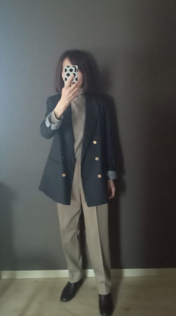 上記2コーディネートと比較して、ややダークトーンになりましたね。