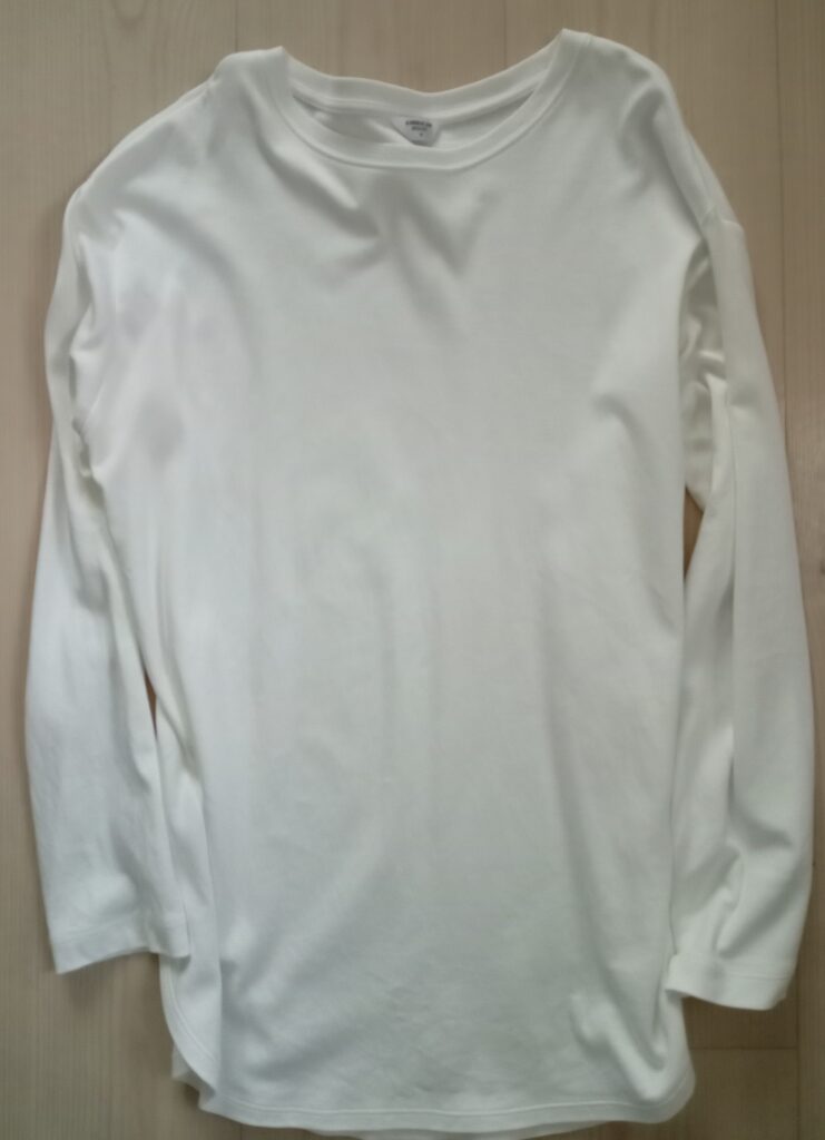 シンプルなカットソーです。真っ白ではなく、オフホワイトですね。