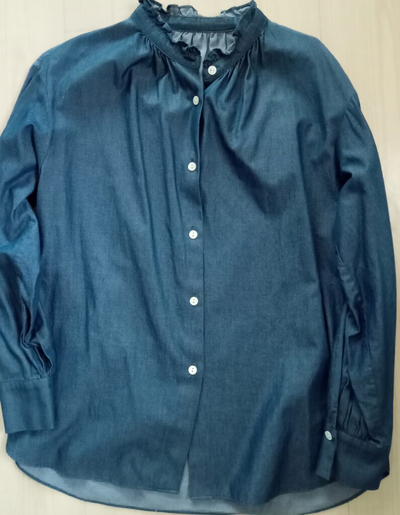 夏はお休みしていた、インディゴスタンドフリルブラウスは、秋・冬に活躍します。
