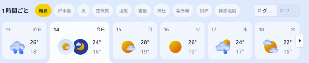 日中は要らなくても、早朝は羽織ものがあったほうがよさそうです。