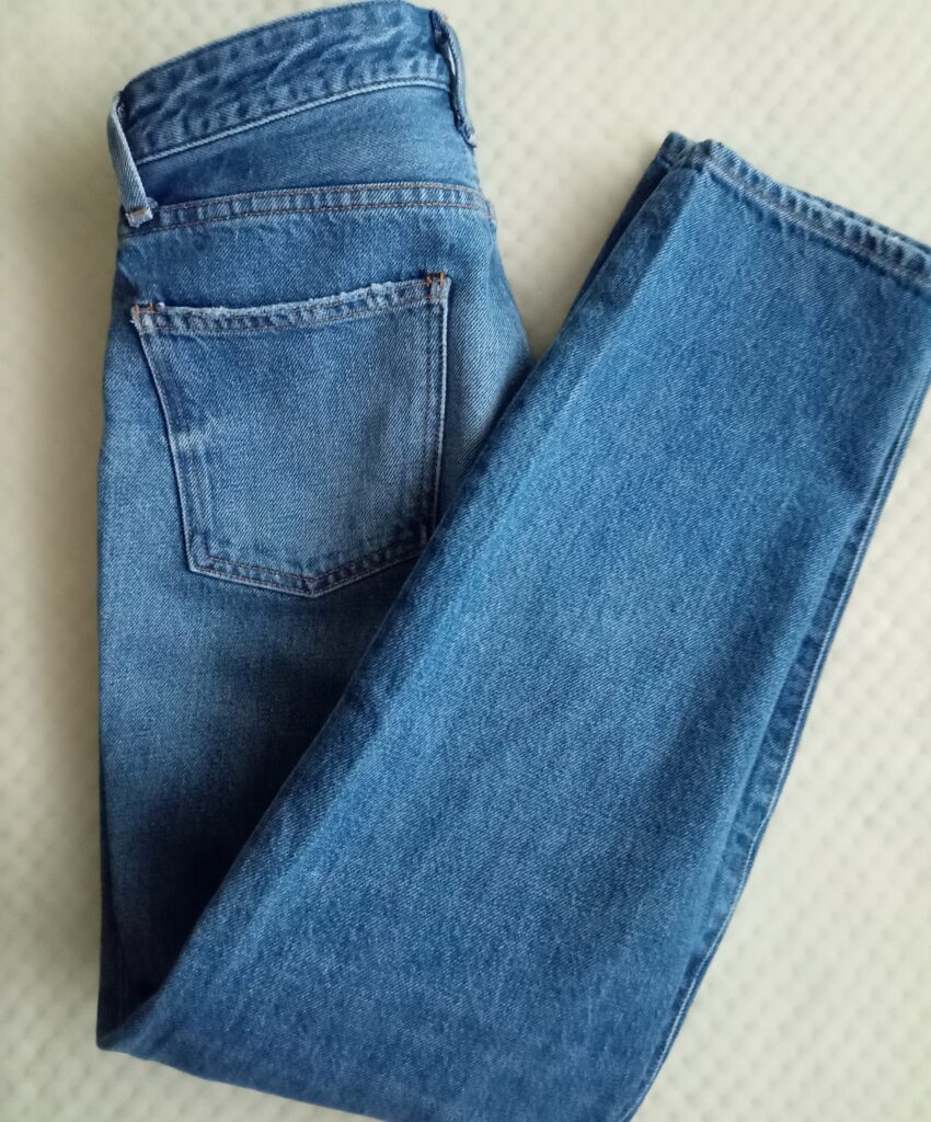 長年愛用のグレーストレートデニムパンツです。