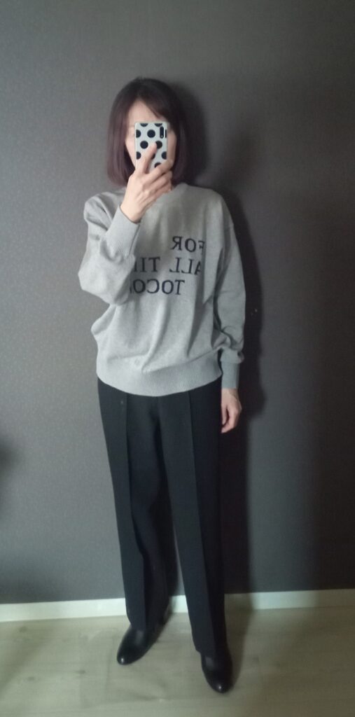 グレーに合わせた場合地味すぎた、モカ系ニットですが