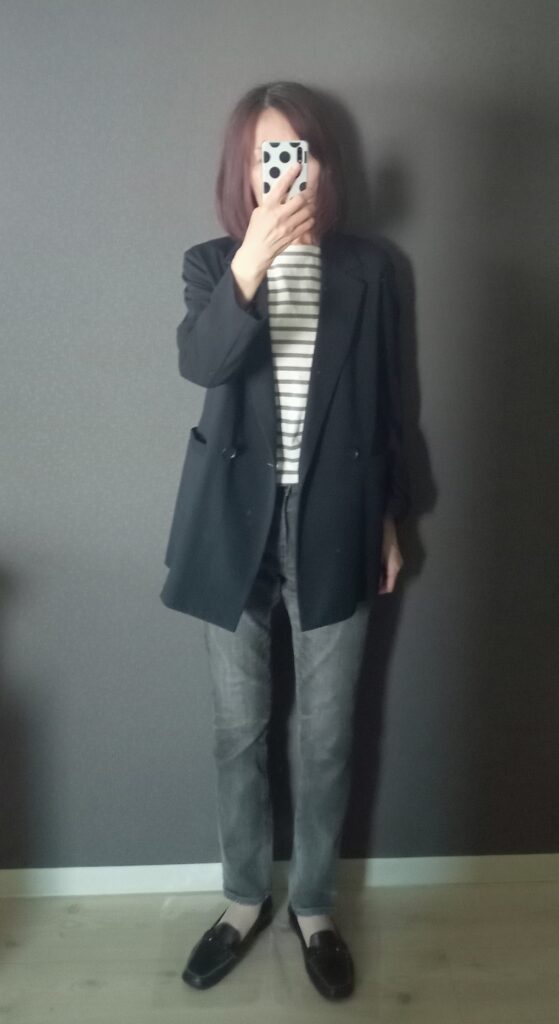 ボーダーカットソーでも、ジャケットを羽織ることで大人が着ても大丈夫そうですね!(個人的判断)